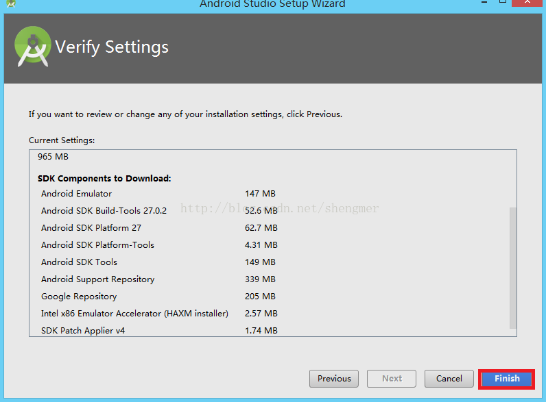 下面是下载完成:点击Finish就可以了。这样你的Android Studio 就安装完成了。