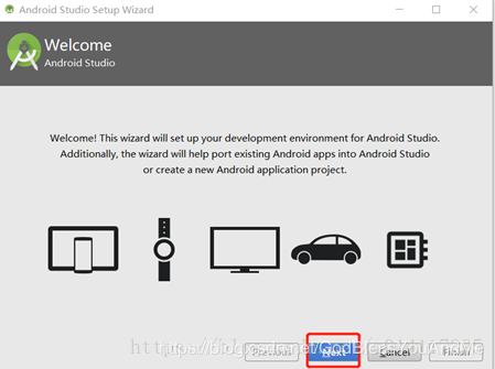 3 、选择安装目录,可以用默认的也可以更改安装目录,但最好是放在别的盘符的文件夹下,如D:/androidstudio,然后点next