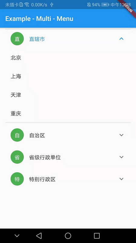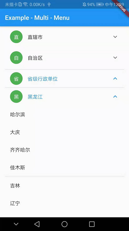 如“省级行政单位” 下面的 “黑龙江”还有很多个“市”,还不需要继续遍历返回 层级菜单ExpansionTile;