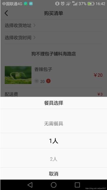 点击选择餐具弹出底部弹窗