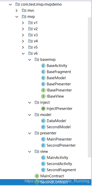 接下来,才是我们的 BaseFragment 类的正真使用。我们新建一个 SecondFragment 实现类,继承与 BaseFragment 类,这里的 SecondFragment 就是 MVP 的 View 层了,与我们的 Activity 一样,同属于 View 层。这里,我偷懒,把 MainActivity 类的基本代码都考过来了。这里就不要太在意什么业务逻辑了,我们只要能测试 MVP 中的 BaseFragment 能够工作就好了。来看代码: