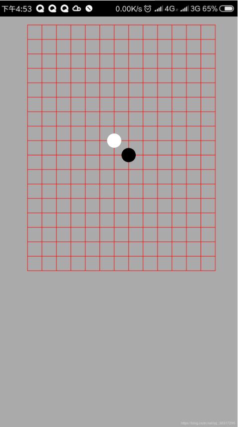 大概就是介个样子的,实现了手指落下,滑动,还有抬起动作的监听,看上去有点乱,但是大概就是这么个意思,里面的deal类是我把已经下的棋子放到了一个二维数组中在里面单独处理,来判断他们到底有没有五子连珠,好啦大概就只有这些了!