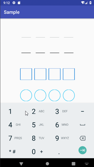 <com.github.gongw.VerifyCodeView android:layout_width="240dp" android:layout_height="50dp" android:layout_marginTop="42dp" app:vcTextColor="#b63b21" app:vcTextCount="4" app:vcTextSize="36sp" app:vcDividerWidth="8dp" app:vcWrapper="centerLine" app:vcWrapperColor="#313335" app:vcNextWrapperColor="#b63b21" app:vcWrapperStrokeWidth="2dp" />