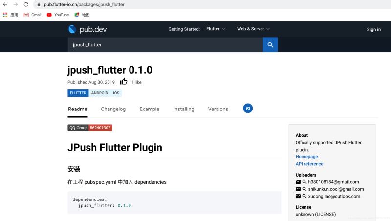 jpush_flutter: 0.1.0 jpush_flutter: ^0.1.0