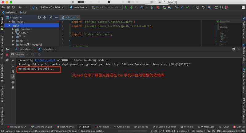 在 flutter 项目中有多种方式方法来依赖极光推送插件,依赖成功后如下图所示。
