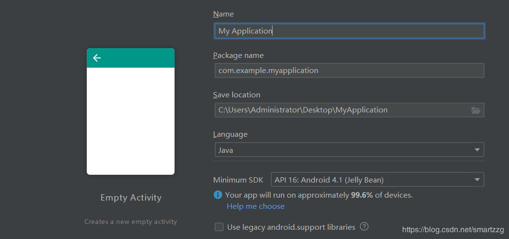 步骤三:启动Android Studio,新建一个项目,可以一路next。