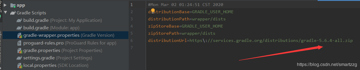 步骤一:在项目路径Gradle Scripts > gradle-wrapper.properties下,查看自己的gradle版本,如5.6.4。