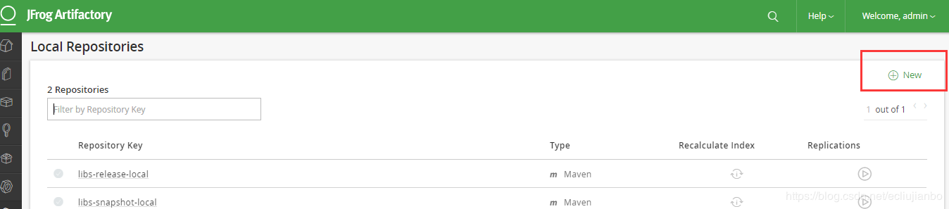 根据上面的流程,我们的远程仓库,需要依赖阿里云的代理仓库。这里先创建一个jcenter仓库。