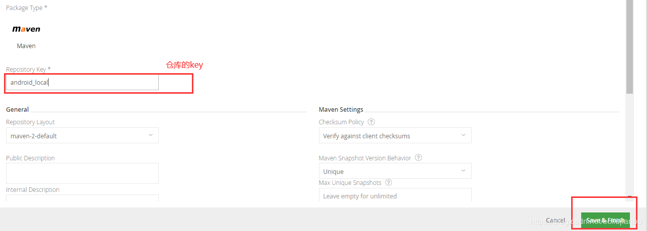 选择Maven,然后,填写Repository key,我们就起一个android_local(自己定义就好)。