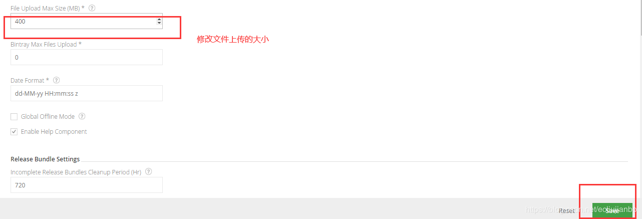 修改File Upload Max Size (MB) ,这个选项,我们改成400M,点击Save。
