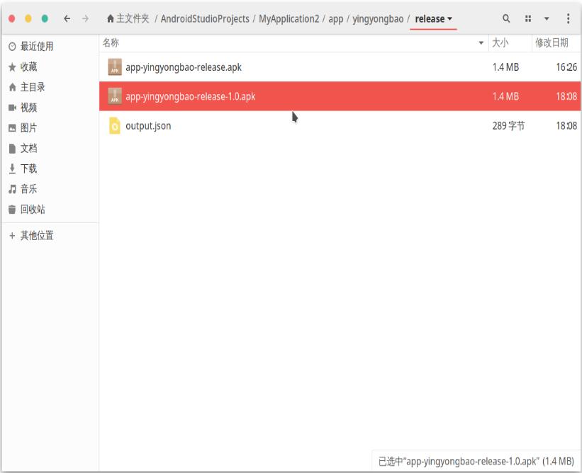 这就是我的项目生成的对应的 apk 文件所在的文件夹,点进去就会看到安装包啦。