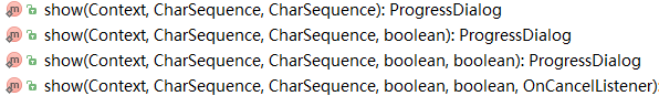 ProgressDialog的创建方式有两种,一种是new ProgressDialog,一种是调用ProgressDialog的静态方法show()创建并显示,这种进度条只能是圆形条。