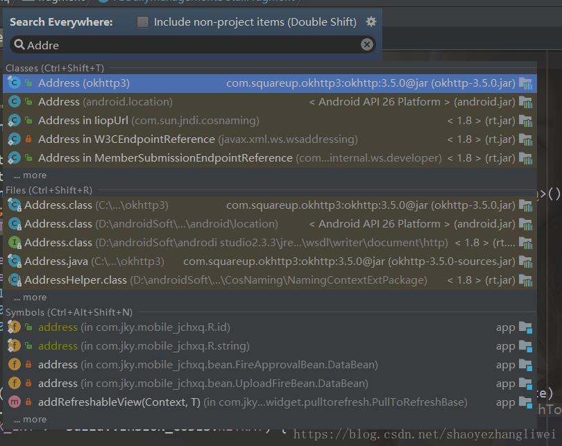 1.双击shift 可以调出搜索 这个搜索是全局含jar搜索,可以快速定位到你搜索的东西存在哪个包下。