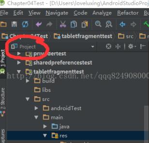 4.由于Android studio默认的是Android显示方式,而在这种方式下新建的layout-sw600dp文件夹是无法看到的,所以此时需要切换到Project方式