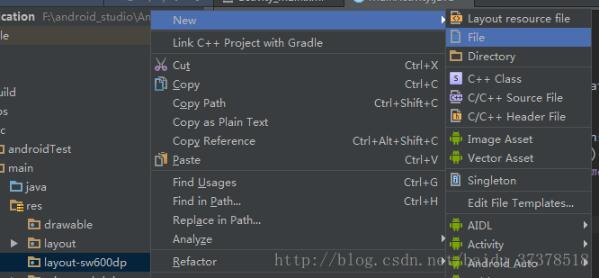 5.在app->src->main->res文件夹下就可以看到layout-sw600dp文件夹