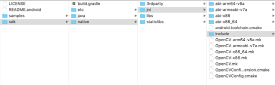 将opencv sdk 目录下对应的路径 sdk/native/jni/include 中的文件复制到cpp目录中。