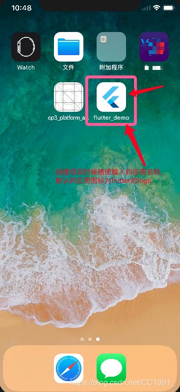 Flutter在新建过程中,生成的project name是默认的应用名称,应用图标也是默认的,具体效果如下所示: