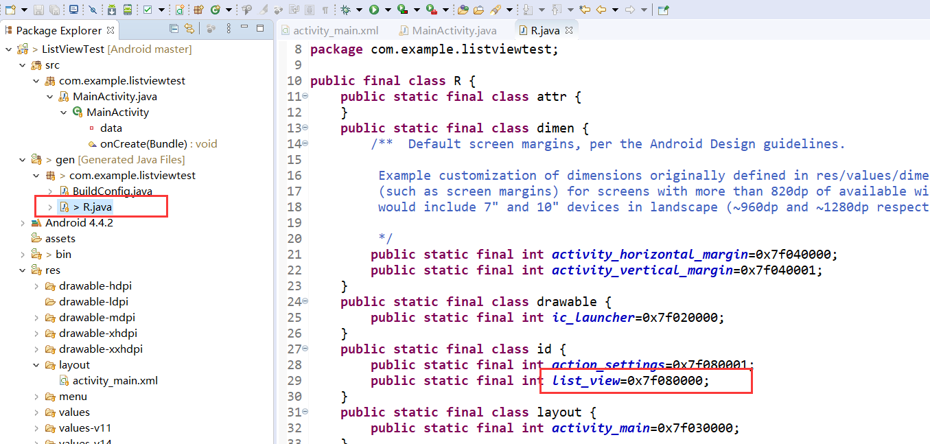 对该组件注册一个list_view的ID(这个R中的语句是运行时会自动生成的),可在这里看到