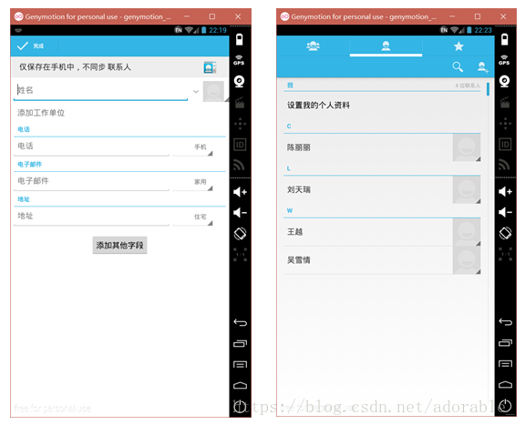 在联系人中添加几个联系人: