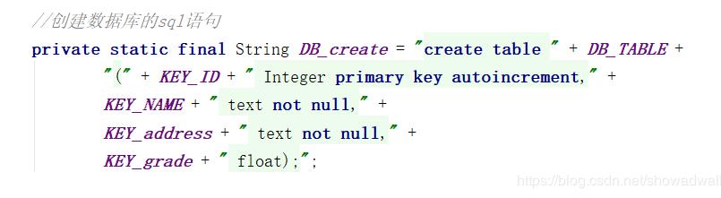 属性名就会变成**“KEY_IDInteger”**依次类推。造成数据无法插入的错误。会造成android.database.sqlite.SQLiteException: table XXX has no column named XXX(code 1):的错误