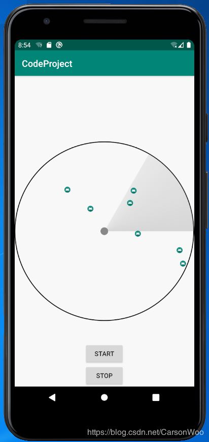 这是一个仿雷达扫描的效果,是之前在做地图sdk接入时就想实现的效果,但之前由于赶着毕业设计,就没有亲手去实现,不过现在自己撸一个发现还是挺简单的。