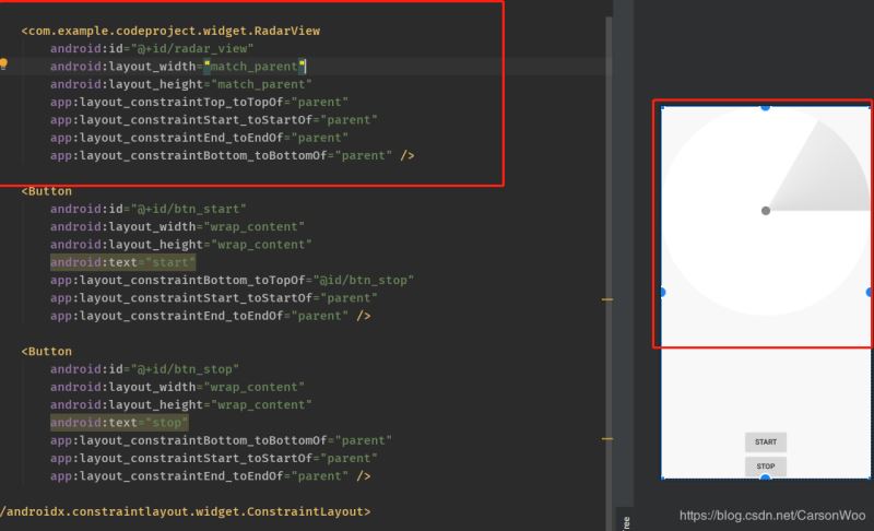 这里完成了测量与绘制的工作,那么我们在布局里引用以后,就会看到这样的效果: