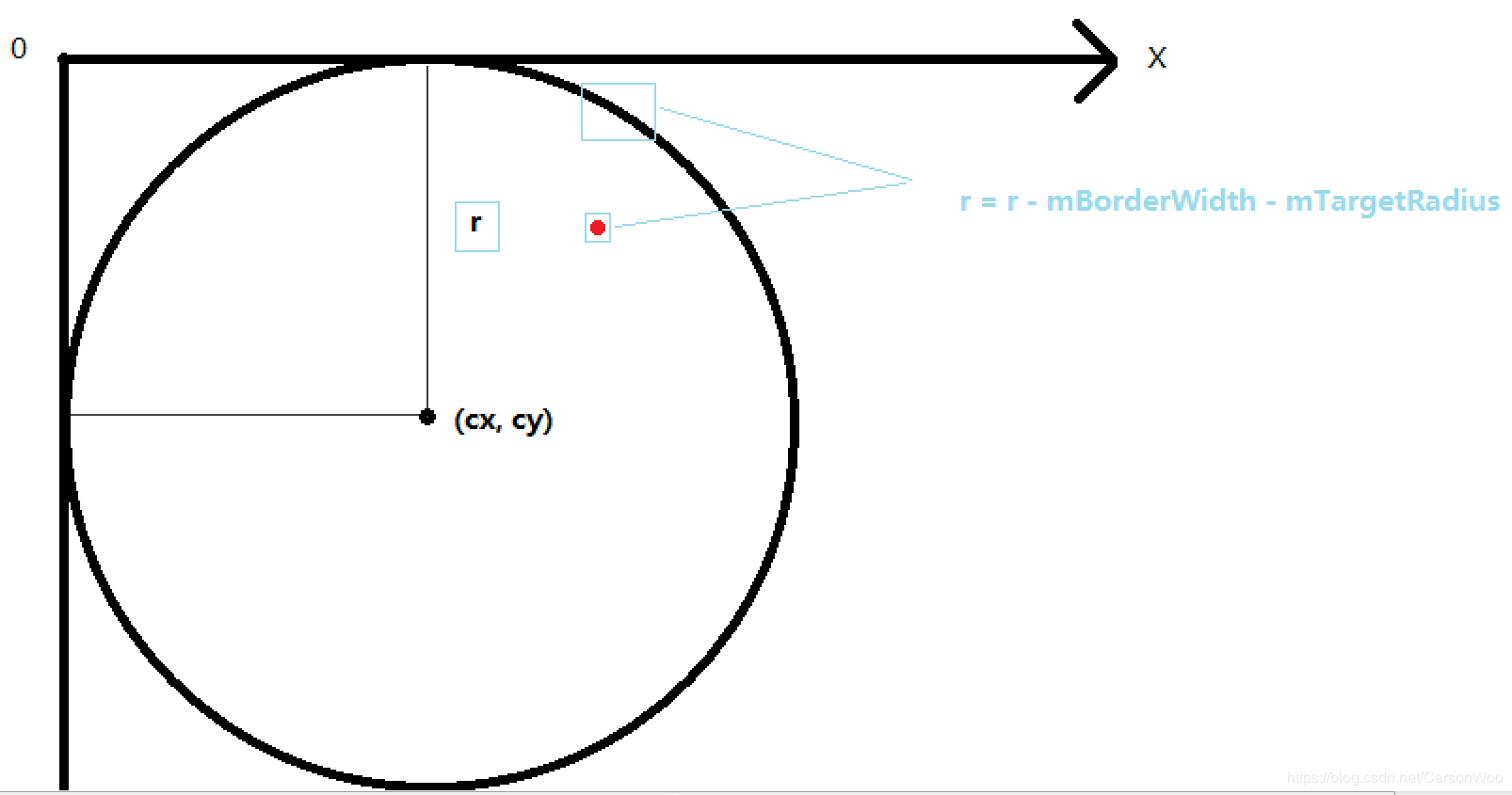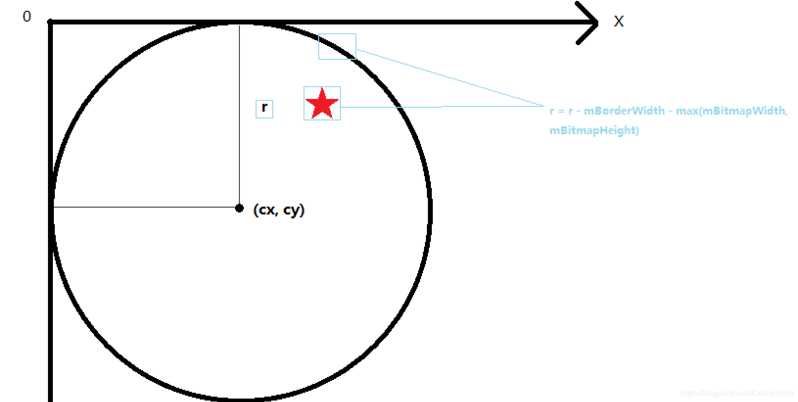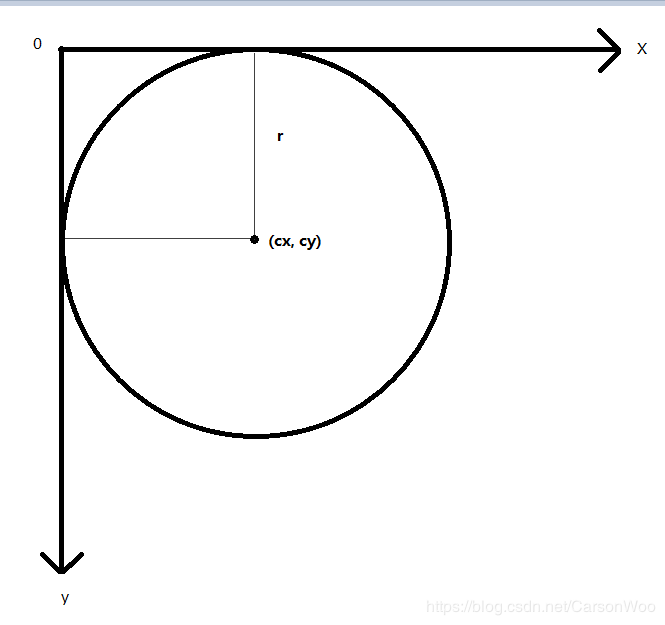 由于Android的坐标系的原点是在左上角,y轴过顶点向下延伸。由我们的绘制可知,此绘制图像在坐标系中的位置大概如下图所示: