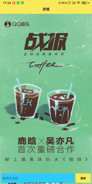 这里想要延伸到状态栏还是需要让状态栏透明,才能看见效果,所以在java代码里需要加入一个小改动。