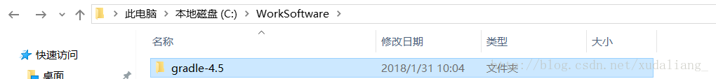 下载完成之后,解压后放入自己想要放入的指定文件夹,我放入了C:\WorkSoftware\gradle-4.5