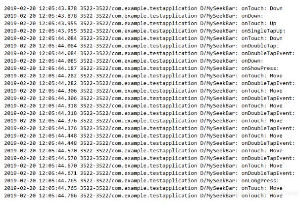 首先可以看到双击(onDoubleTapEvent)被回调之后的Move事件都被传递到了onDoubleTapEvent中。但是当你第二次点击时间达到一定之后,onLongPress会被回调,而当onLongPress被回调之后,MOVE动作就被GestureDetector无视了,直到UP动作出现,显然这不是我们想要的。