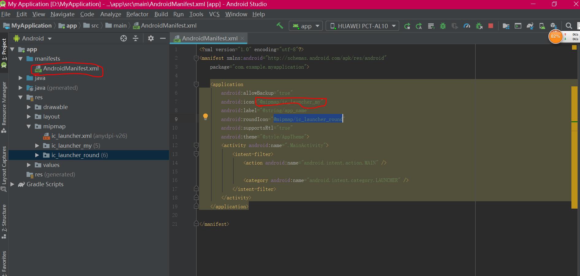 补充知识:Android Studio下APP图标修改教程:千万不要将新图片命名为默认的图片名“ic_launcher.png”