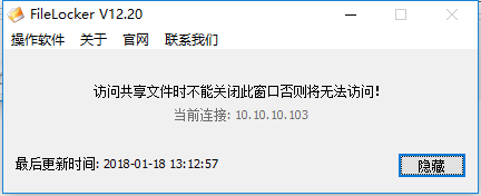 然后我们就可以正常访问共享文件了。如果你不小心退出了FileLockerMain.exe客户端程序,则你可以打开系统的默认安装路径,再次手动双击运行即可。如下图所示: