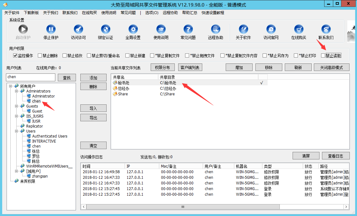 对于服务器共享文件夹只给特定用户访问的设置,除了使用上面的操作系统设置方法,还可以借助于一些共享文件夹权限设置软件、共享文件夹监控软件来实现。