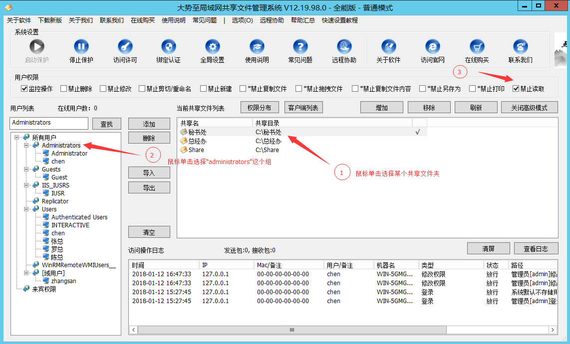 虽然通过操作系统对共享文件夹权限设置可以实现只让特定用户访问共享文件,但是操作比较复杂。同时,虽然可以实现只让特定用户访问共享文件,但当用户打开共享文件后复制里面的内容,或者将共享文件另存为本地磁盘,或者具有修改共享文件权限的情况下不小心或故意删除共享文件的行为,却无法通过操作系统的设置加以阻止。那么,这种情况下就需要借助专门的共享文件管理软件、共享权限设置软件来实现了。