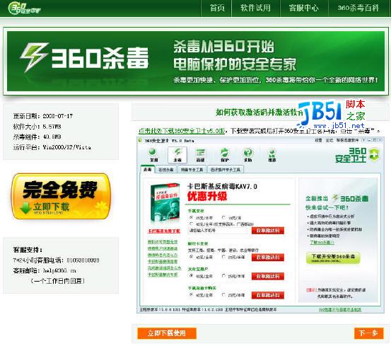 作为技术人员,笔者在前几天已经听说奇虎360要做免费的杀毒软件了,所以一直留心关注。7月17日,360网站真的放出了安全卫士5.0(5.57MB)和360杀毒组件(40.8MB)。好,那就让我们一起来试试360杀毒软件吧,免费的午餐来啦!(图1)