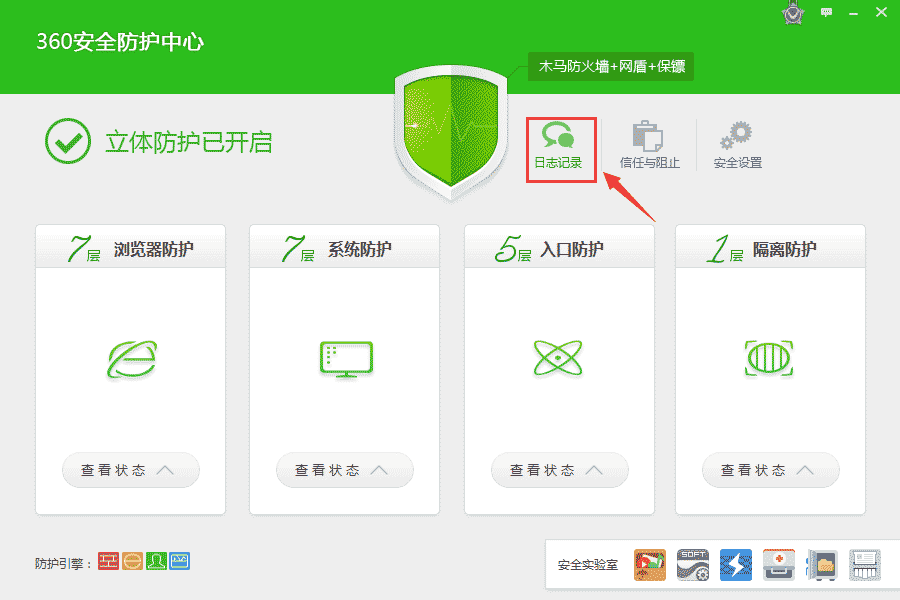 在360安全防护中心中打开日志界面,寻找已经被删除的文件名和路径。(将鼠标放在记录上即可显示路径)