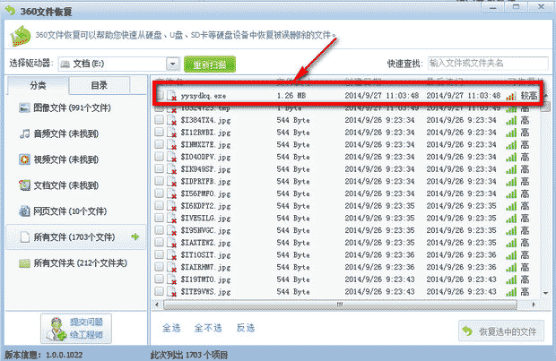 找到被删除的文件名选项,勾选然后点击恢复就可以了。