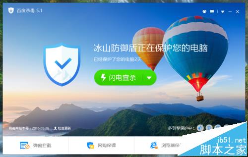 1、打开电脑中安装的百度杀毒程序主界面。如图所示;