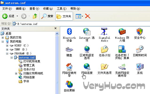 你的电脑的每个分区根目录都有一个autorun.inf的文件夹,查看属性是只读+隐藏,且无法删除、无法取得权限!点进去,却显示的是控制面板的内容?