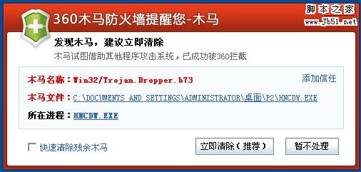 二丶如客户同时装了360安全卫士和360杀毒软件,360杀毒软件误报玩家可以根据上面的方法进行操作,而360安全卫士则会跳出另外一个对话框要求客户删除HnzQ.exe这个文件,首先建议客户点击暂不处理,重新启动电脑,关闭360软件更新后尝试是否可以正常进入软件。