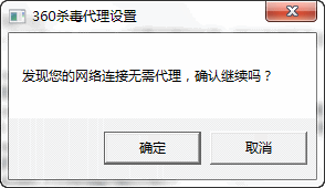 360杀毒会自动检测您是否需要使用代理服务器上网,如果不需要,则会提示您: