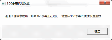 360杀毒会自动清除代理设置,清除完成后提醒您: