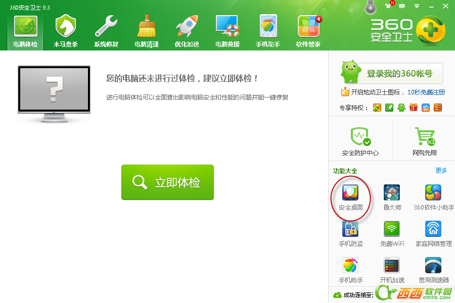第一步、打开360安全卫士 在功能大全里面找到安全桌面系统会自动下载并且安装