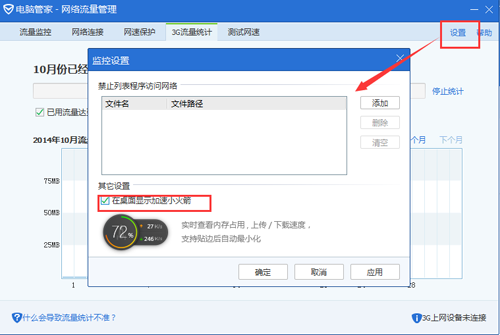 2、 在上网之前没开启3G流量统计功能;或在上网过程中关闭了3G流量统计功能
