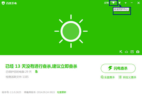 2、接着,点击右上角的【安全防护中心】图标,如图所示。