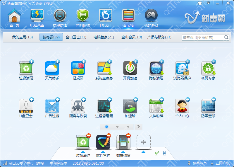 用户在安装了新毒霸之后,在软件界面都找不到开机启动项设置的地方,软件主界面只有电脑杀毒、铠甲防御、网购保镖、手机助手、百宝箱、我的游戏等几大功能区域。使用新毒霸如何管理我系统开机启动项呢?