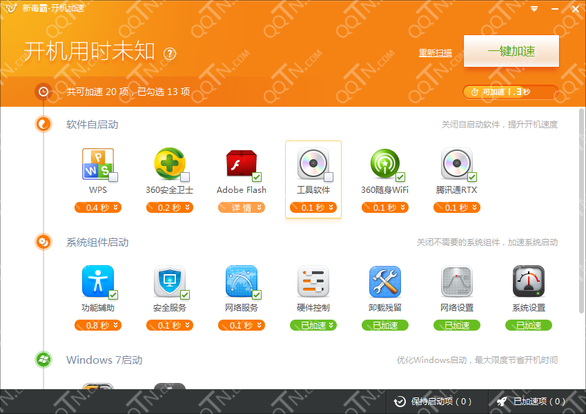 3、添加之后,打开开机加速,工具会自动扫描开机系统启动项