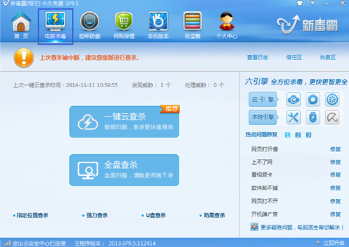 金山毒霸节省病毒查杀时间的方法如下: