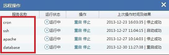 3、对于Linux操作系统,服云提供包括Corn、SSH、Apache、Database在内的服务器重要服务重启操作,如图所示: