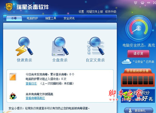 开始菜单和添加删除中都没有瑞星建议大家从官网下载最新的安装包覆盖安装,可以修复瑞星